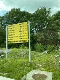 Om 9.30 uur werd ik opgehaald door Milos en we moesten zo’n 50 kilometer rijden. Hier zouden we weer een uur over doen. Eerst de stad Podgorica uit en dat ging o.a. langs de Millenium brug. Het was een eenbaansweg langs allerlei dorpjes. Een wat grotere plaats, Danilovgrad, zag er interessant uit. Ik zag een beeldentuin en bij het riviertje zag ik een duikplank staan.
