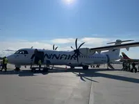 Gelukkig viel de vertraging mee en ging de gate open. De bus stond al op ons te wachten en met een korte rit stonden we bij ons vliegtuig. Dit was nu een ATR 72-500. Je moest achterin instappen via een trapje(de deur van het vliegtuig die opengeklapt was) Mijn trolley paste gelukkig in het vak en mijn rugzak ging net onder de stoel voor mij. Ik zat op stoel 13 D en er kwam niemand naast mij zitten. Er zijn iets van 17 rijen en aan elke kant van het gangpad zitten twee stoelen.